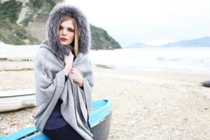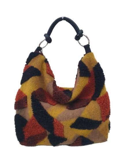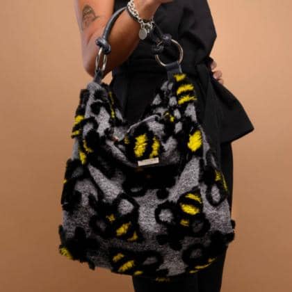 Sack bag in wool grey with bee design in fur and shoulder trap. Big and comfortable bag also to be used every day