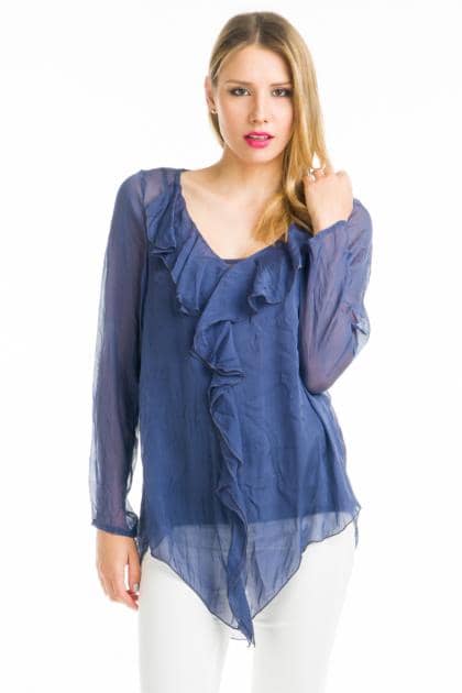 Silk blouse with ruffles on the front. Long sleeves. Inside, tank top viscose.