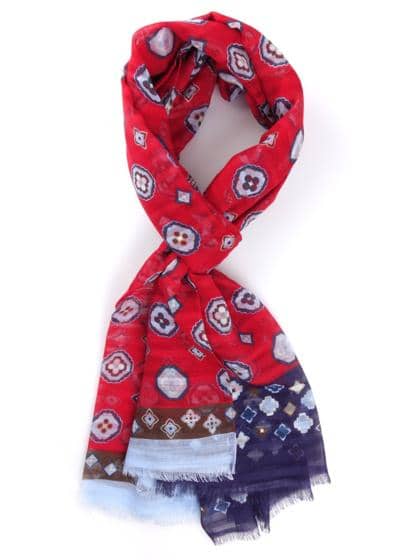 Pure Italian silk scarf. Printed with natural based inks and with excellent back pass. Embellished with handmade silk tassels. Dimensions: 45x180 cm (without the tassels) - 45x190 cm (with the tassels). Luxury product.