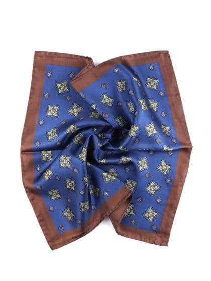 Pocket handkerchief in printed silk twill. Pass-through print of excellent quality.