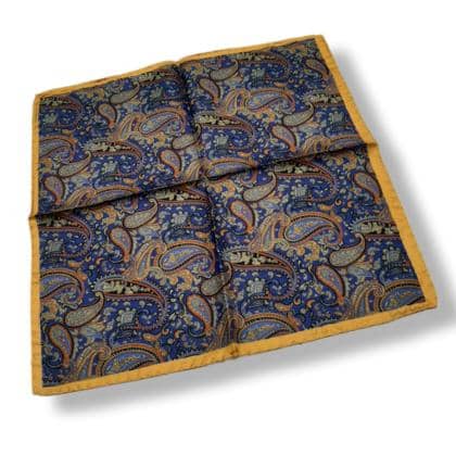 Pocket handkerchief in printed wool twill. Pass-through print of excellent quality.