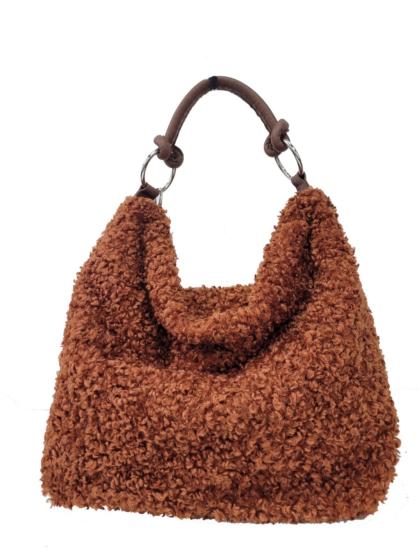 Duffel bag in mixed sheepskin effect fabric with Scottish check design. Handle for carrying by hand or on the shoulder. Zip closure. Equipped with shoulder strap. Soft, light and very roomy.